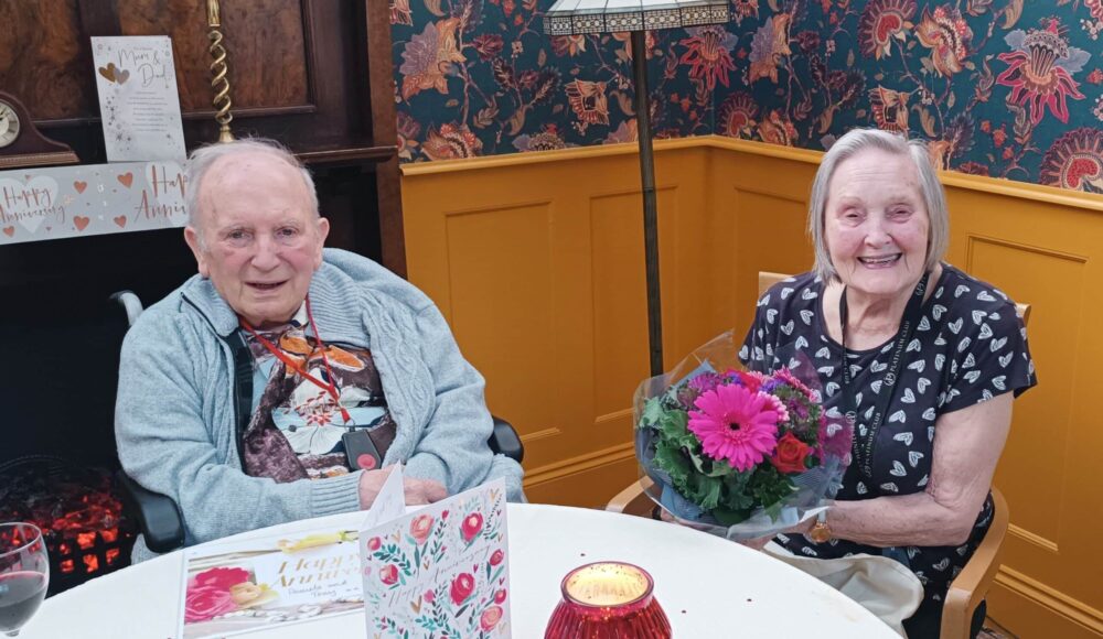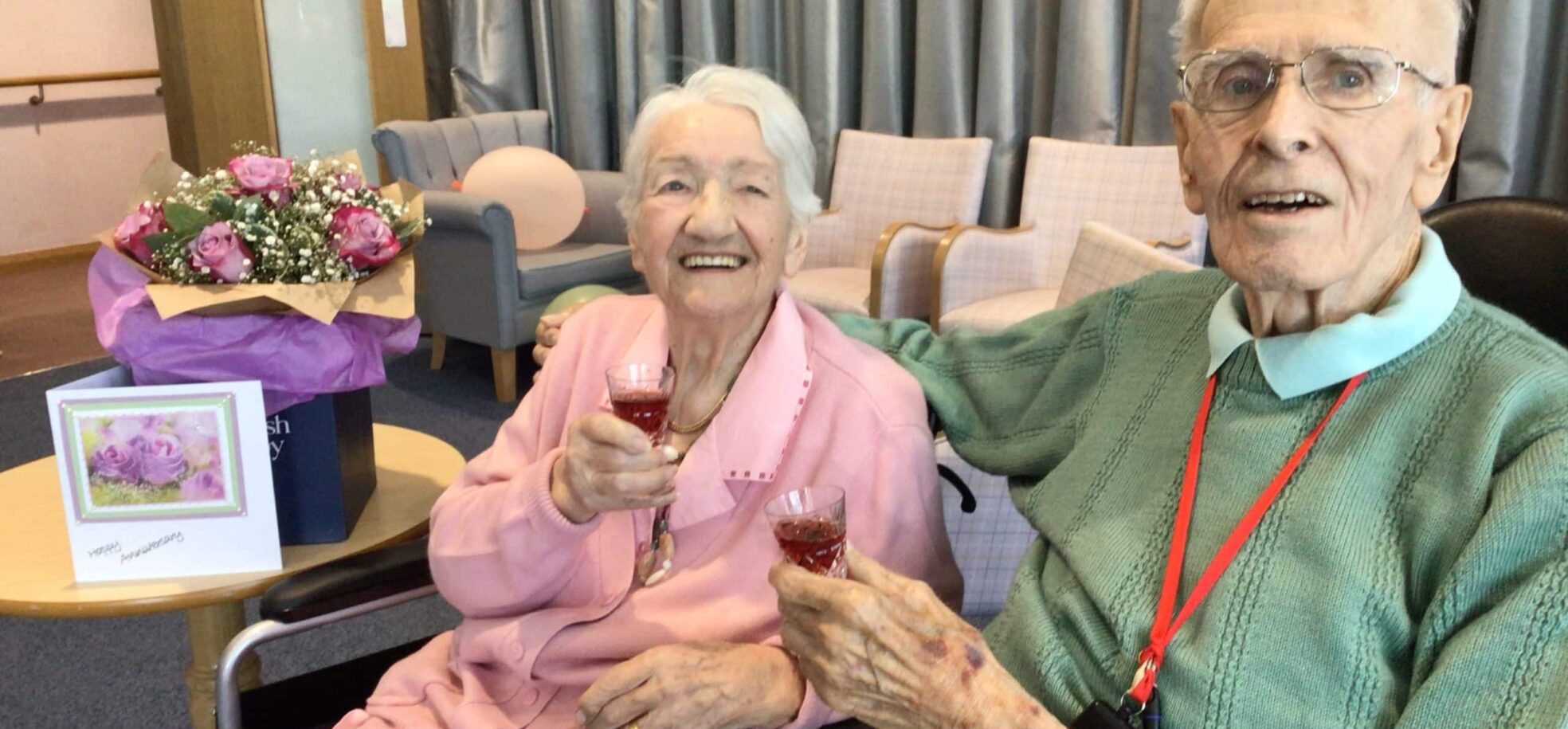Two residents at Connaught Court, in Fulford, York, celebrated their 28th wedding anniversary. Ninety-three-year-old Brian, and 100 year old Marie Thackray received a bouquet of flowers and well wishes from fellow residents, staff members and loved ones. They enjoyed a celebration at the Home with a bottle of sherry.